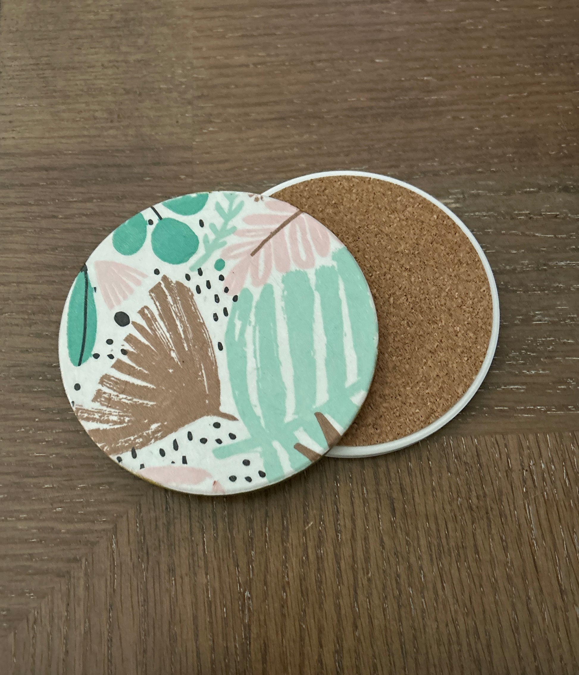 Floral Decoupage Coasters: Modern Ceramic Coasters with Cork Bottom, Set of 4