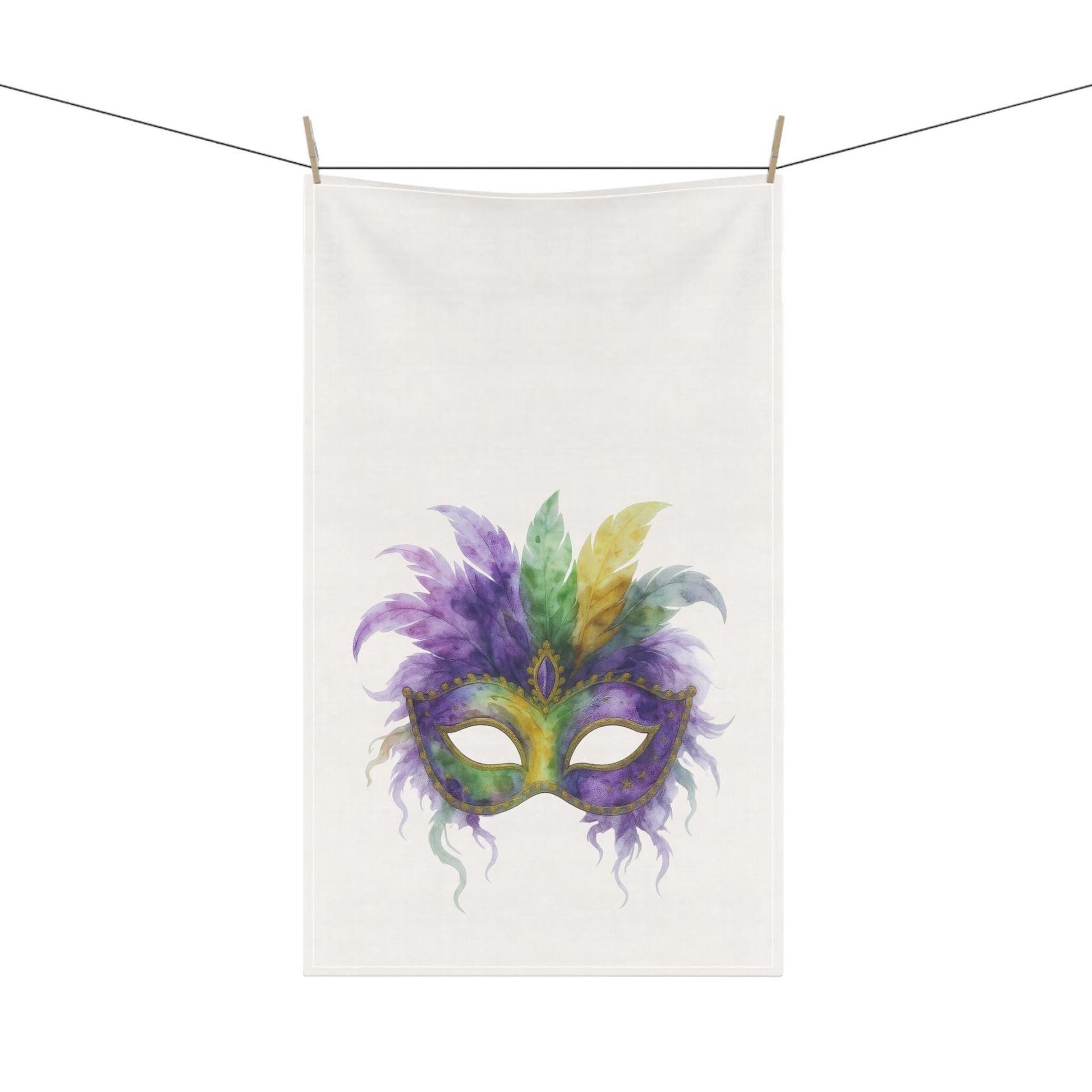 Mardi Gras Mask Kitchen Towel | Watercolor Carnival Decor