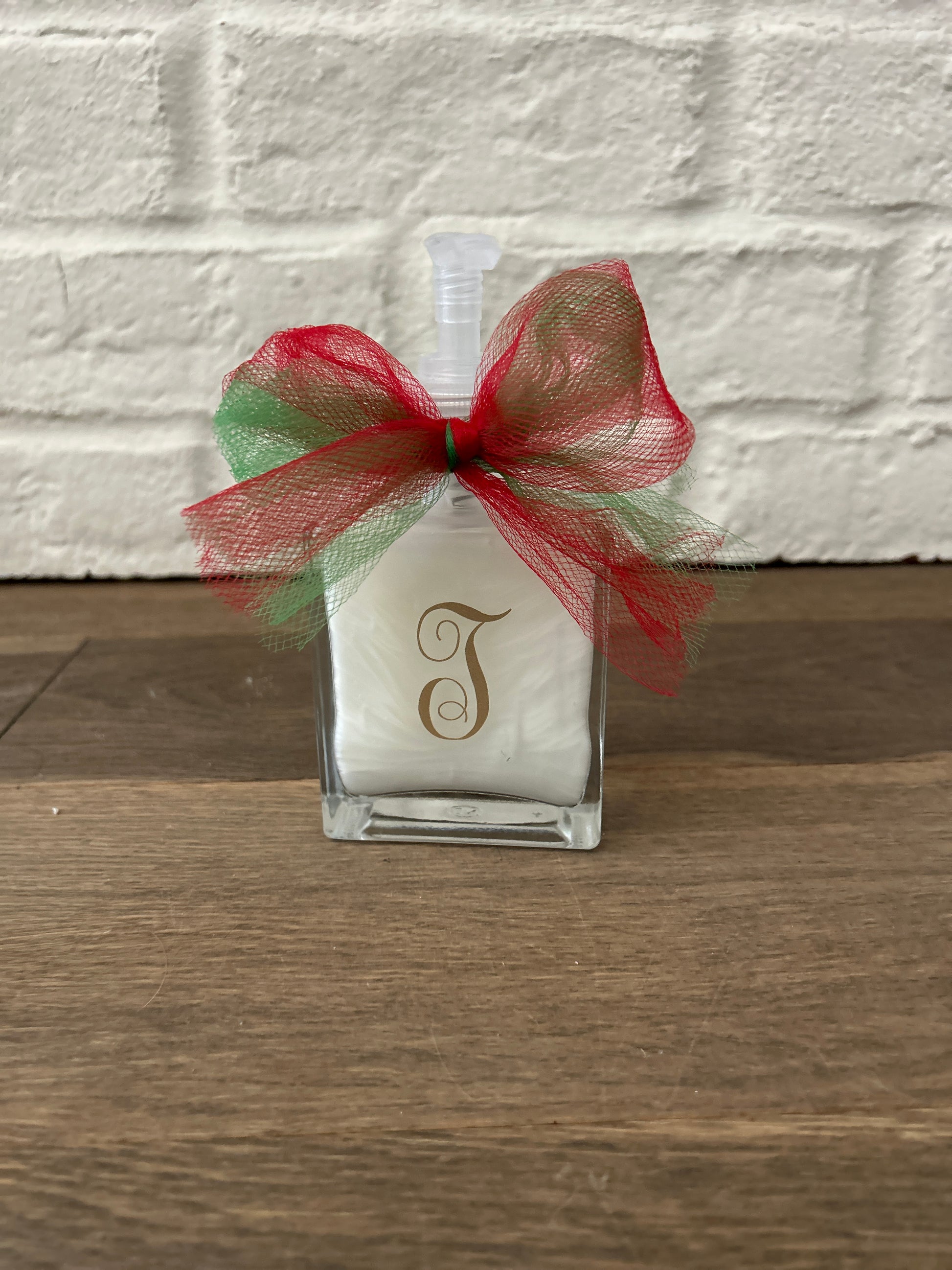 Personalized Initial Glass Soap Dispenser: Christmas Gift with Ribbon